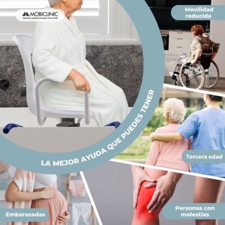 Este producto de apoyo para el aseo que facilita las tareas de higiene personal, permite al usuario realizar cambios de posición de forma sencilla y sin riesgos.