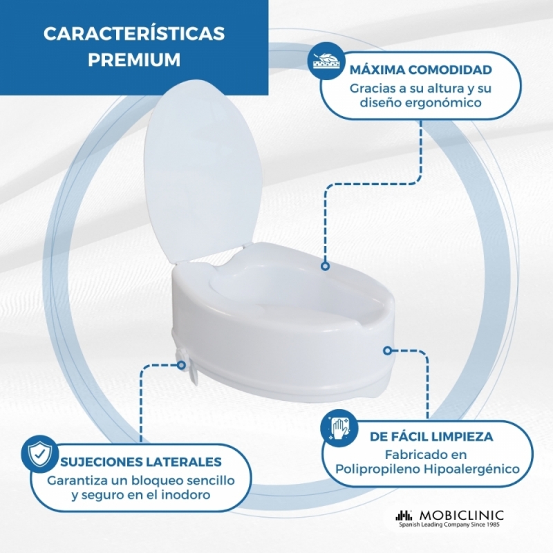 Elevador WC | Con tapa | 14 cm | Blanco | Ajustable | Titán | Hasta 160 Kg| Mobiclinic