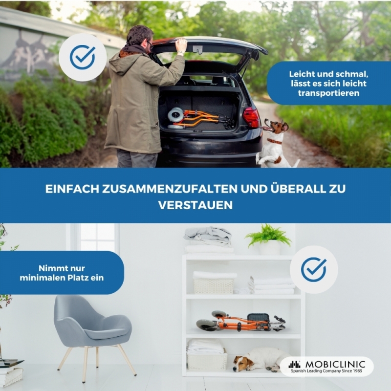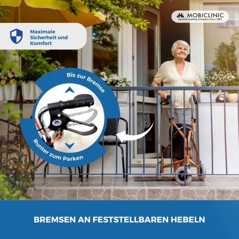 - Die Sicherheit und Autonomie: Seine Stabilität und Druckbremsen am Handgriff garantieren dem Benutzer eine sichere Fahrt.