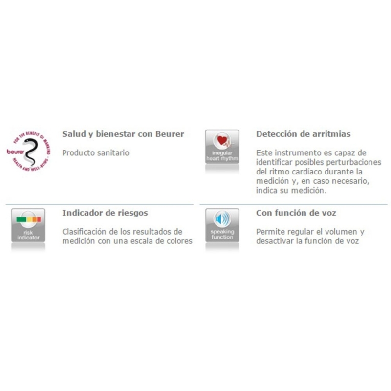 El nuevo tensiómetro para brazo con voz de Beurer ofrece una práctica y novedosa función de voz (regulable en 4 idiomas) y regulable también en sonido, ya que permite regular el volumen o desactivar la función de voz.