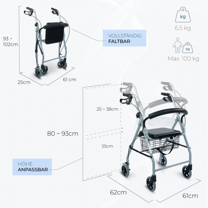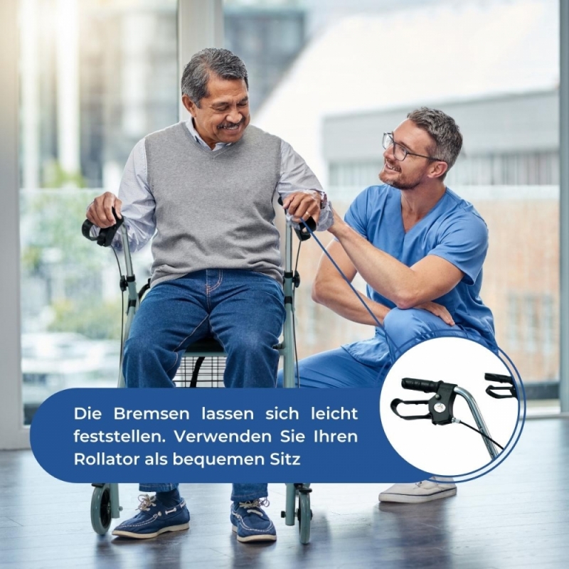 - Ihrer Stärke und Halt. Dank ihrer robusten Struktur können Sie diesen Rollator für Senioren unbesorgt genießen.