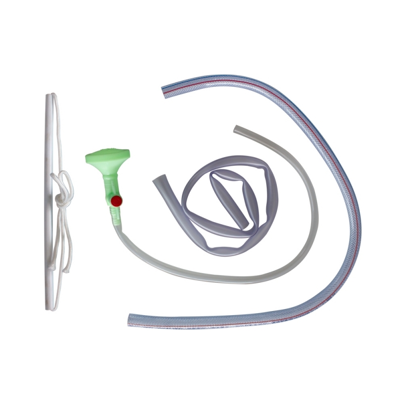 -Einschließlich Drainageschlauch, Handpumpe und Wasserbeutel mit Schlauch und Artischocke.