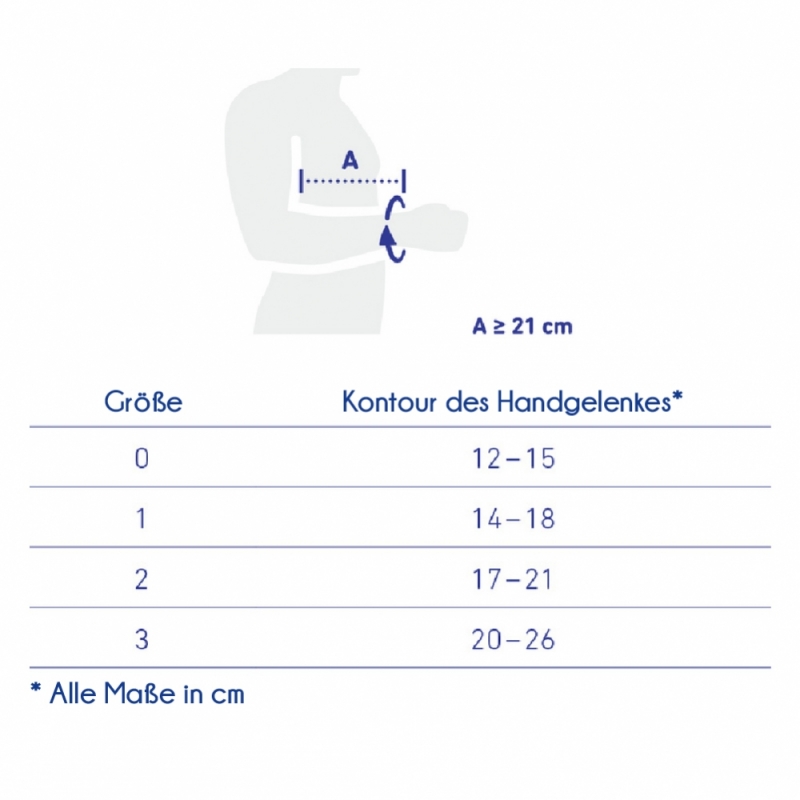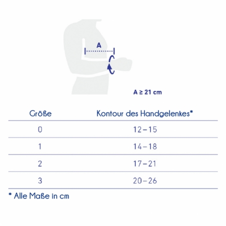 Die Größe bezieht sich auf den Handgelenksumfang in Zentimetern.