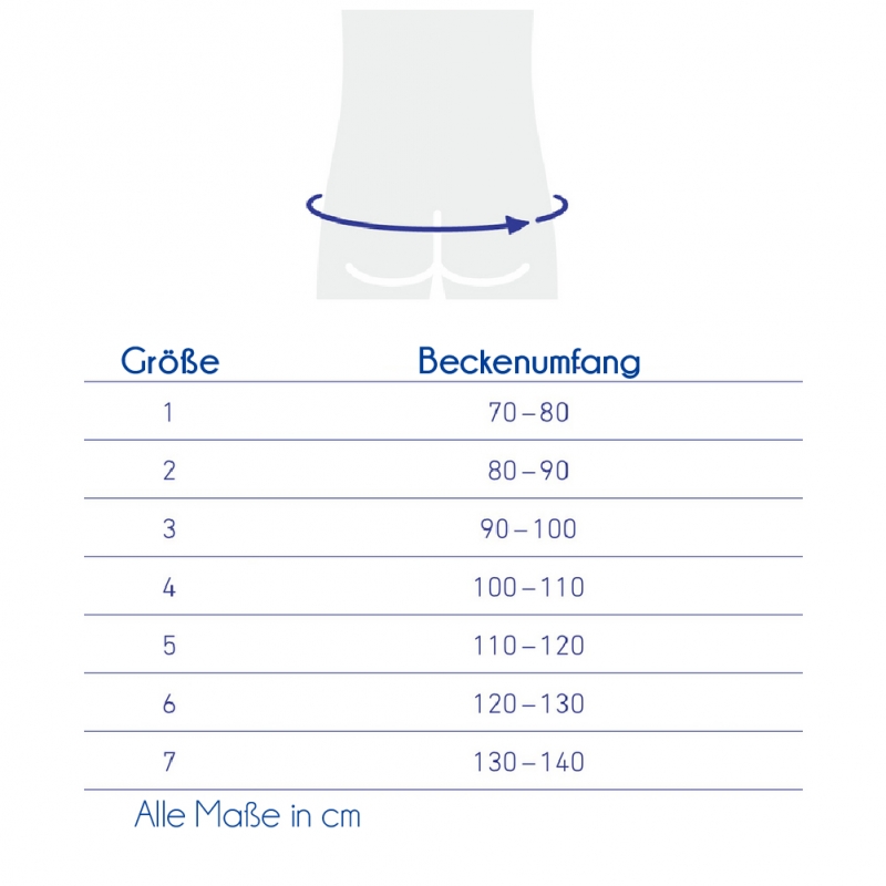 Die Größe wird anhand des Beckenumfangs in Zentimetern angegeben.