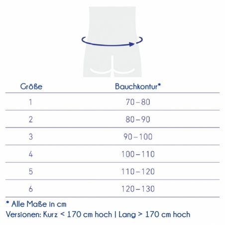 Die Größe richtet sich nach der Bauchkontur in Zentimetern.