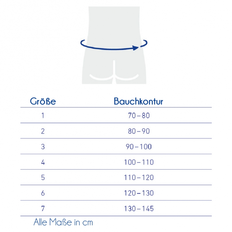 Die Größe basiert auf dem Taillenumfang in Zentimetern.