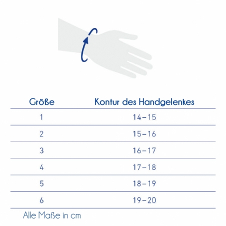 Die Größe bezieht sich auf den Handgelenksumfang in Zentimetern.