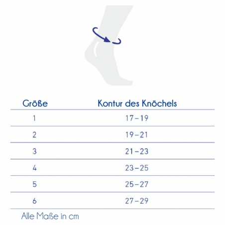 Die Größenangabe basiert auf dem Knöchelumfang in Zentimetern.