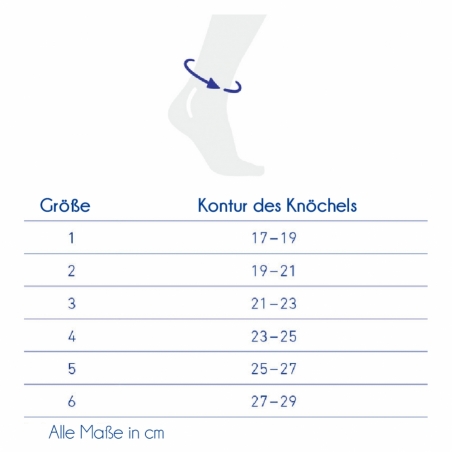 Die Größe bezieht sich auf den Knöchelumfang in Zentimetern.