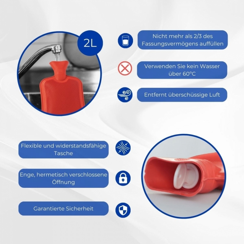 Beim Kauf einer Wärmflasche ist die Sicherheit ein sehr wichtiges Kriterium. Dank dieser Bett-Flasche können Sie sich mit Sicherheit in kalten Nächten wärmen.