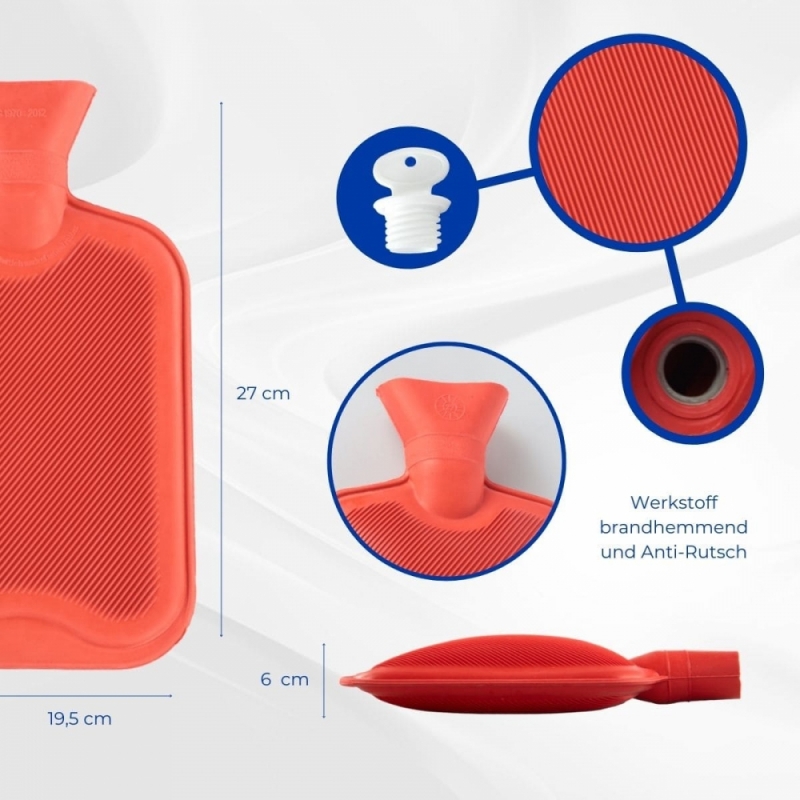 Diese Wärmflasche flexibel und resistent hat ein hermetisch Flaschenhals. Sie können es mit warme Wasser auffüllen und sich wärmen. Die Wärmflasche mit Bezug ist eine traditionelle Mittel für kalte Jahreszeit oder für Muskelschmerzen.