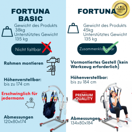 Der elektrische Lifter Fortuna Basic Mobiclinic ermöglicht den sicheren Transfer eines Patienten vom Rollstuhl auf ein Sofa, Bett oder umgekehrt. Er reduziert den körperlichen Aufwand für die Patientenbewegung und achtet besonders auf die körperliche Gesundheit des Pflegepersonals. Dieses Modell verhindert vor allem: