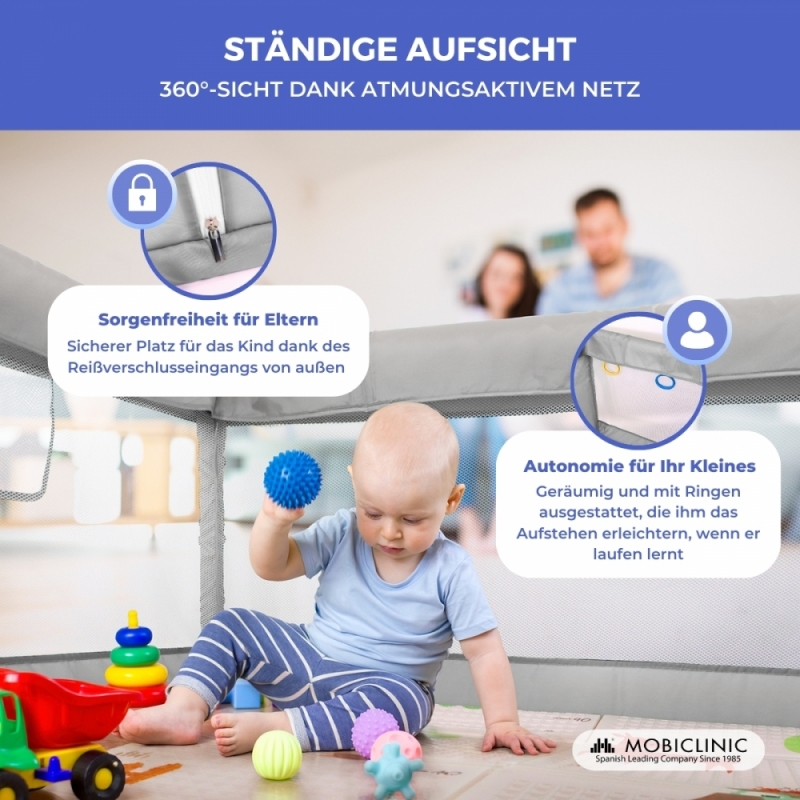 VEREINFACHTE ÜBERWACHUNG: Das atmungsaktive Netz fördert die Belüftung und die 360-Grad- Sicht, sodass Eltern oder Betreuer andere Aufgaben erledigen können , ohne die Kleinen aus den Augen zu verlieren . Der Laufstall ist nützlich, um das Kind vorübergehend bei Aktivitäten wie Kochen , Putzen oder Empfangen von Besuchern zu Hause zu halten, ohne dass eine ständige Aufsicht erforderlich ist.