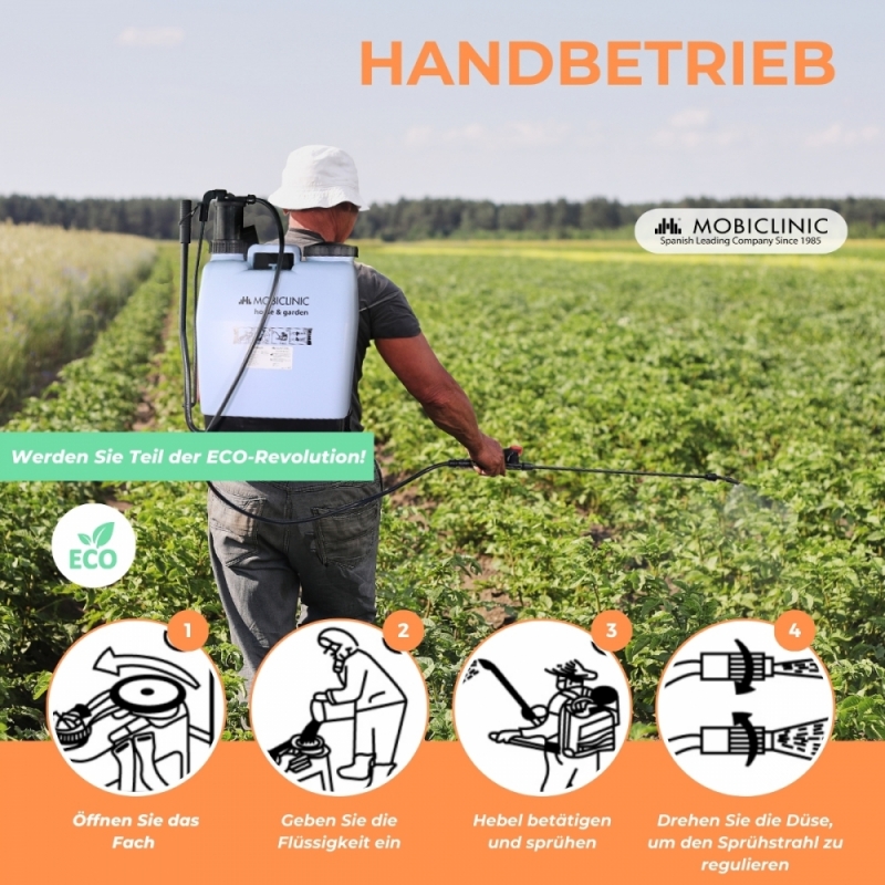 RESSOURCENSPAREND: Durch die gezielte und effiziente Anwendung trägt es dazu bei, Ressourcen wie Wasser und Chemikalien zu schonen, indem unnötiger Abfall vermieden wird. Es eignet sich sowohl für die Landwirtschaft als auch für den Gartenbau und für verschiedene Anwendungen in Industrie und Bauwesen. Dieses Sprühgerät eignet sich zum Auftragen von Pestiziden, löslichen chemischen Düngemitteln, Desinfektionsmitteln, Reinigungs- und Reinigungsmitteln und meistert alles mit Effizienz und Präzision.