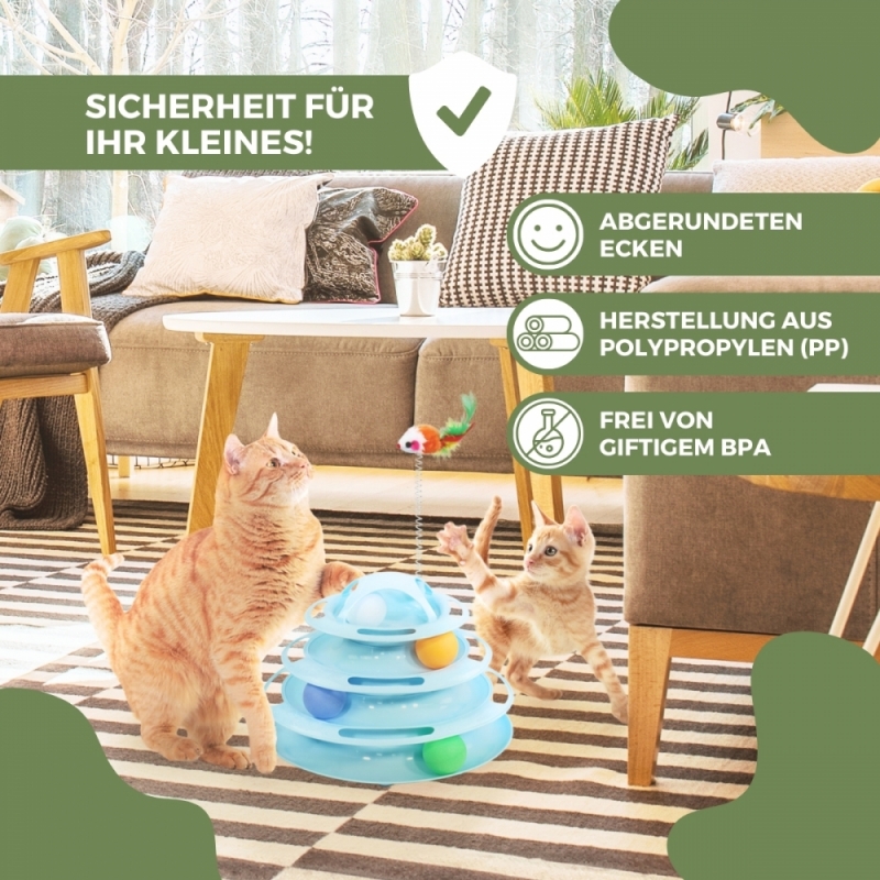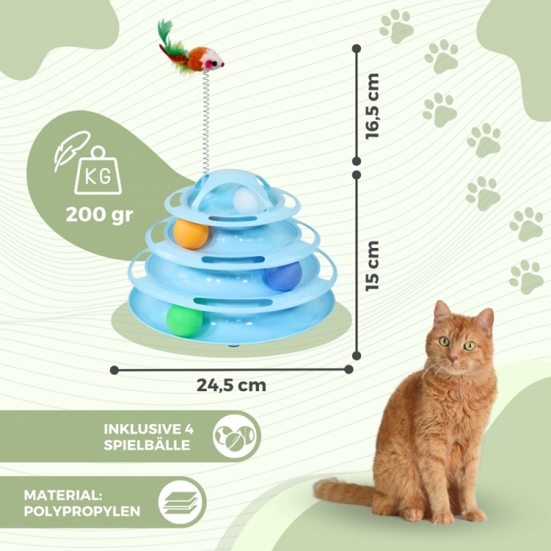 Die Bälle rotieren auf den vier Ebenen , sodass Ihre Katze ihnen nachjagen und versuchen muss, sie mit ihren Krallen zu fangen, was Ihrem Haustier stundenlangen Spaß und Bewegung garantiert.