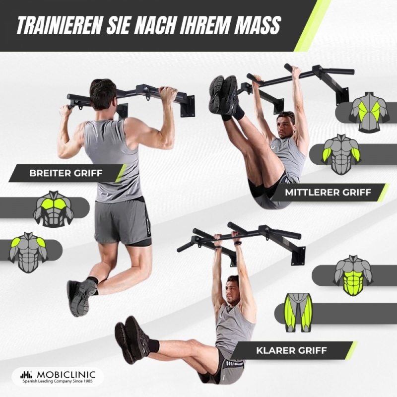 VIELFÄLTIGE ÜBUNGEN: Ideal für verschiedene Übungen wie Klimmzüge, Beinheben, Klimmzüge mit Untergriff, Schrägklimmzüge, Knieheben, Muscle-ups und vieles mehr. Bietet eine umfassende Lösung für Ihr Krafttraining.