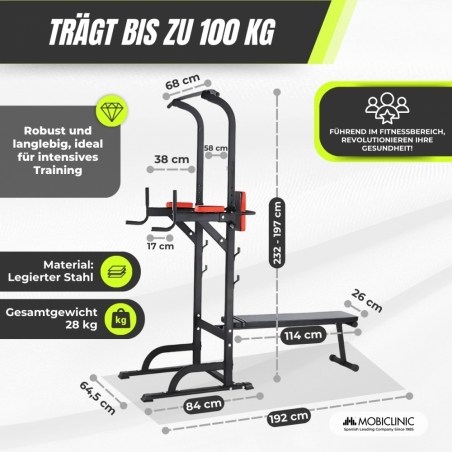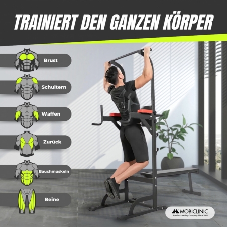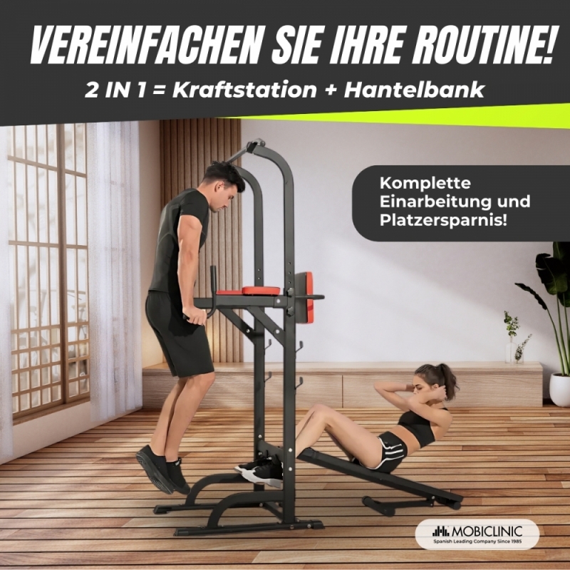 Die DOMIFIT-Kraftstation ist die perfekte Lösung für alle, die ein multifunktionales Fitnessgerät für zu Hause suchen. Diese Station ist für unterschiedliche Trainingsintensitäten konzipiert und eignet sich sowohl für Anfänger als auch für Fortgeschrittene. Sein faltbares Design erleichtert die Aufbewahrung und macht es zu einer praktischen Option für alle Arten von Häusern.