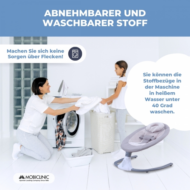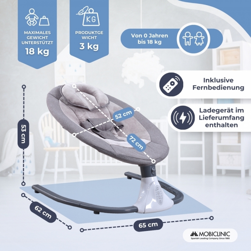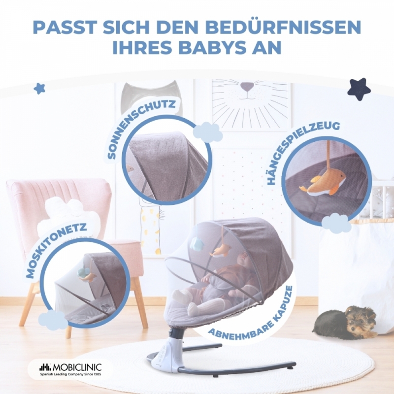 EINSTELLBARE SCHWINGFUNKTION: Bietet mehrere Geschwindigkeiten, um die Bewegung an die Vorlieben des Babys anzupassen. Ideal zur Beruhigung und Förderung des Schlafes.