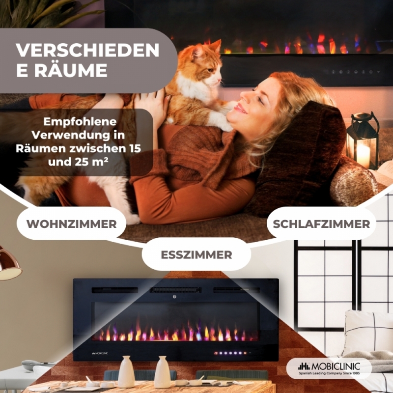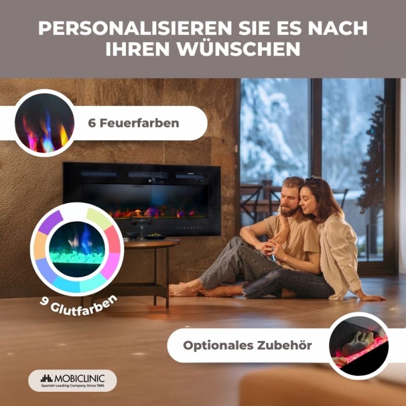 REALISTISCHE 3D-FLAMME: Genießen Sie dank der 3D-Flamme eine realistische, sichere und ästhetische Flamme. Wählen Sie aus 6 verschiedenen Flammenfarben und 9 Glutbettfarben, um die perfekte, persönliche Atmosphäre zu schaffen. Dieser elektrische Kamin erzeugt eine warme und gemütliche Atmosphäre und schafft eine einzigartige Wohlfühlatmosphäre.