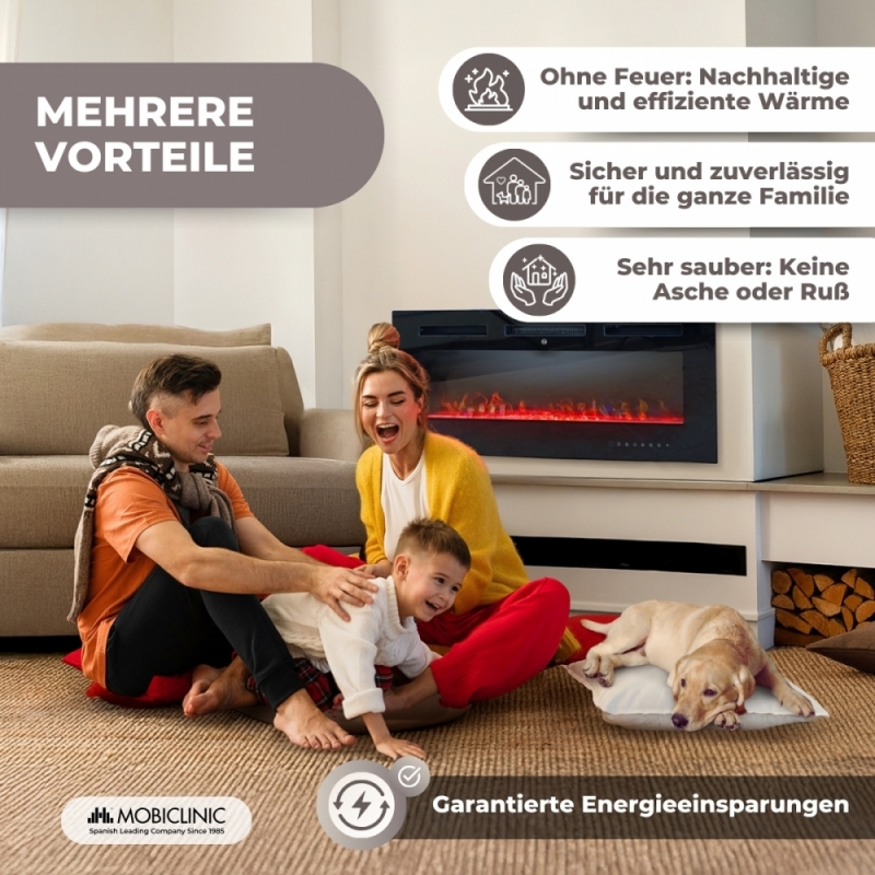 Mit einem Überhitzungsschutzsystem gewährleistet es einen sicheren Betrieb, indem es die Stromversorgung unterbricht, falls die Temperatur ein höheres Niveau erreicht. Darüber hinaus verfügt er über einen einstellbaren Timer von 1 bis 8 Stunden, mit dem Sie den Kamin programmieren können, was für mehr Kontrolle und Energieeffizienz sorgt.