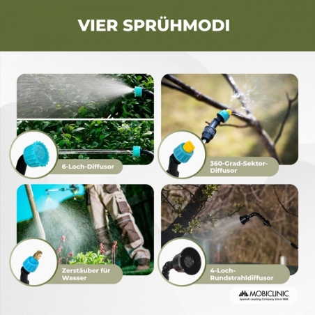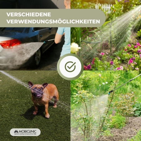 VIELSEITIGE FUNKTIONEN UND ANWENDUNGEN: Enthält vier austauschbare Düsen zur Anpassung an verschiedene Aufgaben. Perfekt zum Gießen, Desinfizieren, Baden von Haustieren oder Reinigen.