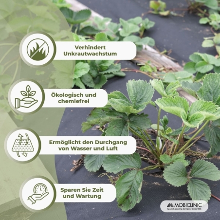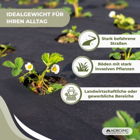 EFFEKTIV UND UMWELTFREUNDLICH: Dieses Unkrautvlies verhindert das Wachstum von Unkraut ohne den Einsatz von Chemikalien. Es wirkt als physikalische Barriere und reduziert das Unkrautwachstum, ohne die Bodengesundheit zu beeinträchtigen.