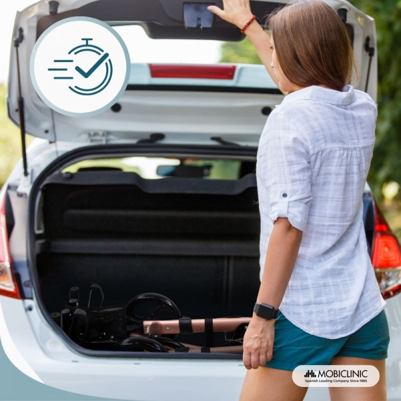 TÜREN UND KOFFERRAUM : Dieser Gehwagen hat eine Gesamtbreite von 62 cm und passt somit durch Standardtüren mit einer Breite von 62,5 cm. Da er zusammengeklappt nur 25 cm misst, kann er im Kofferraum eines Volkswagen Polo transportiert werden. Überprüfen Sie die Maße Ihrer Türen und Ihres Fahrzeugs, um sicherzustellen, dass er passt.