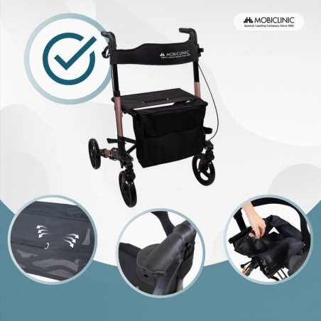 Dieser 4-Rad-Gehwagen bietet Ihnen maximalen Komfort, da er über einen Sitz mit Rückenlehne verfügt, sodass Sie sich jederzeit ausruhen können. Im Lieferumfang ist auch eine Einkaufstasche enthalten, sodass Sie Besorgungen erledigen können, ohne sich um das Tragen von Gegenständen kümmern zu müssen. Dank der Gepäckablage können Sie Ihr Gepäck und Ihren Aluminium-Gehwagen überallhin mitnehmen.