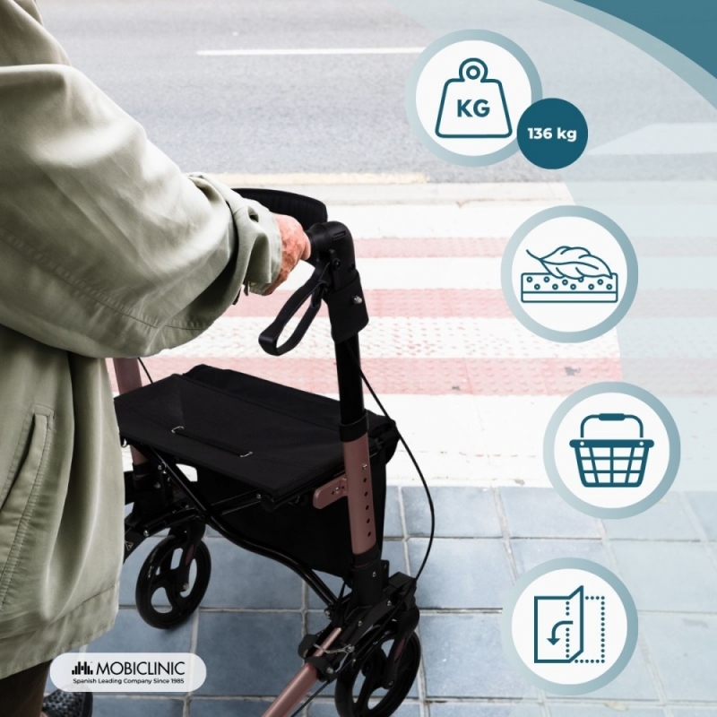 Das Design dieses Senioren-Gehwagens ist elegant und dank seiner Aluminiumkonstruktion mit blauer Lackierung können Sie ihn überallhin mitnehmen. Der Gehwagen mit Sitz ist mit nur 7,3 kg sehr leicht. Seine Höhe ist von 83 bis 95 cm verstellbar und lässt sich so schnell und einfach an Ihre Bedürfnisse anpassen.