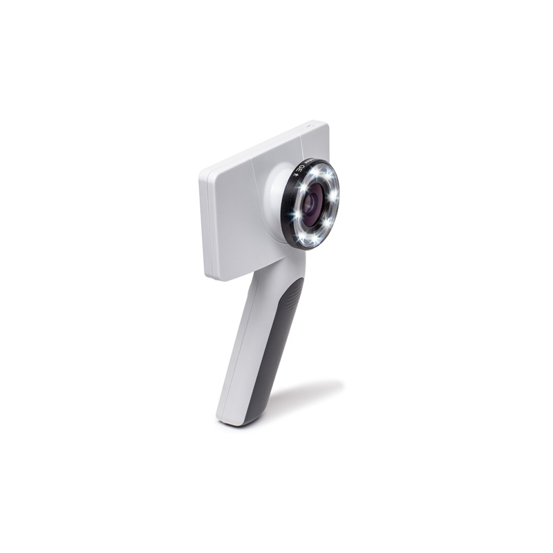 Dieses Gerät verfügt über einen Touchscreen, mit dem der Benutzer schnell und einfach Fotos und Videos aufnehmen kann. Die Kamera liefert hochauflösende Bilder, die vergrößert werden können – im Otoskop-Modus von 2x bis 6x und im Dermatoskop-Modus von 2x bis 8x. Zusätzlich ist ein digitaler Zoom integriert. Dank des ergonomischen Drehreglers lässt sich das Gerät einhändig bedienen und Fokus sowie Lichtintensität einstellen. Dies trägt außerdem dazu bei, das Risiko einer Kreuzkontamination zu minimieren.