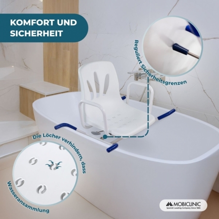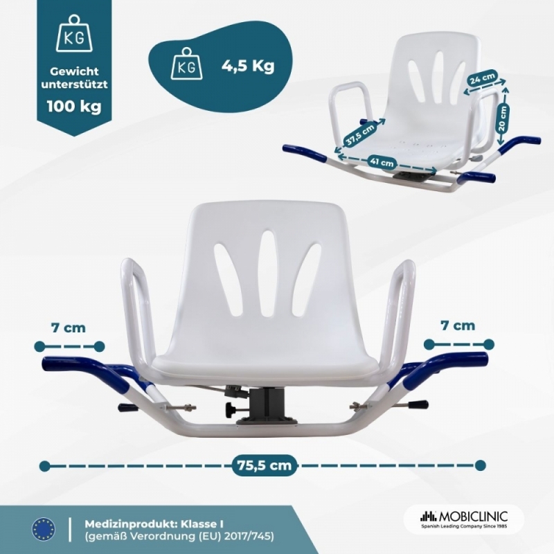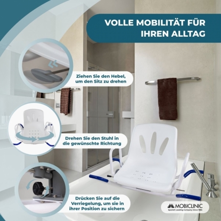 Drehbarer Badewannenstuhl | Armlehnen | Rückenlehne | Anatomisch | 360º | Edelstahl | Lago | Mobiclinic