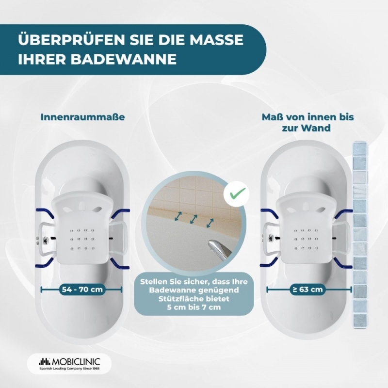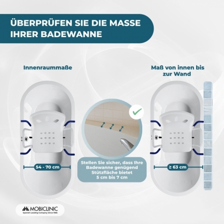 ANPASSUNGSFÄHIG : Der Badewannenstuhl passt perfekt. Sie müssen das Badezimmer nicht umbauen; er passt sich Ihnen an.