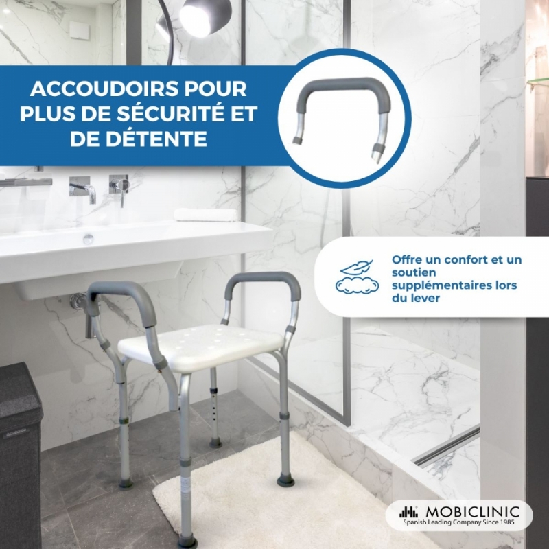 De plus, pour le confort de l'utilisateur, les accoudoirs de la chaise de douche sont rembourrés et ils sont très faciles à monter, d'un seul clic, vous pourrez les enfiler et les enlever en toute simplicité, achetez-les maintenant et adaptez-les à vos besoins !