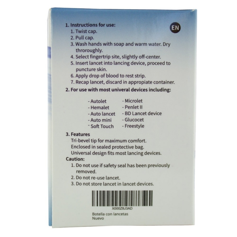 Ce paquet comprend 50 lancettes, ce qui est idéal pour les personnes qui ont besoin de les utiliser de façon récurrente, comme les personnes atteintes de diabète. Il est également utilisé pour déterminer si vous avez certaines allergies.