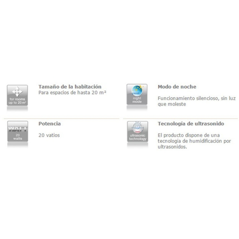 Il micro-pulvérise grâce à une technologie d’humidification de l’air, ce qui le rend idéal pour les pièces jusqu’à 20 m2. Il intègre la technologie ultra-sons : les vibrations haute-fréquence génèrent de petites gouttes d’eau au niveau de la superficie de l’eau. Grâce à cette technologie, le dispositif est silencieux et peu consommateur d’énergie (20 W). Malgré cela, il atteint un potentiel d’humidification jusqu’à 200 ml/h.