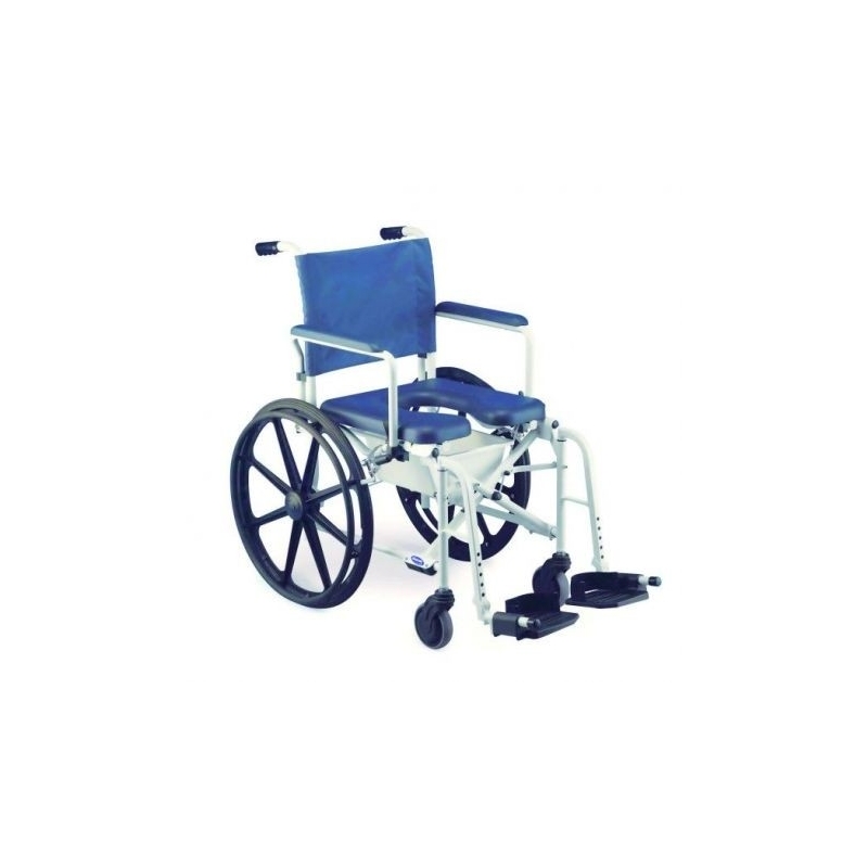 Fauteuil roulant de baignoire ou de douche avec ouverture WC pour les utilisateurs qui ont besoin d'aide pour leur hygiène personnelle. Solution parfaite pour les exigences domestiques et les institutions. Fabriqué en aluminium résistant à la corrosion.