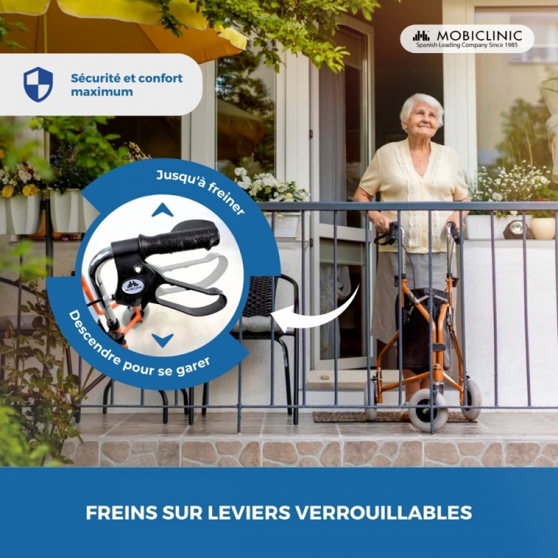 Déambulateur à 3 roues | Pliable | Freins aux poignées | Panier | Orange | Caleta | Mobiclinic