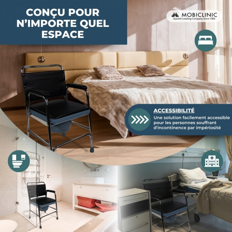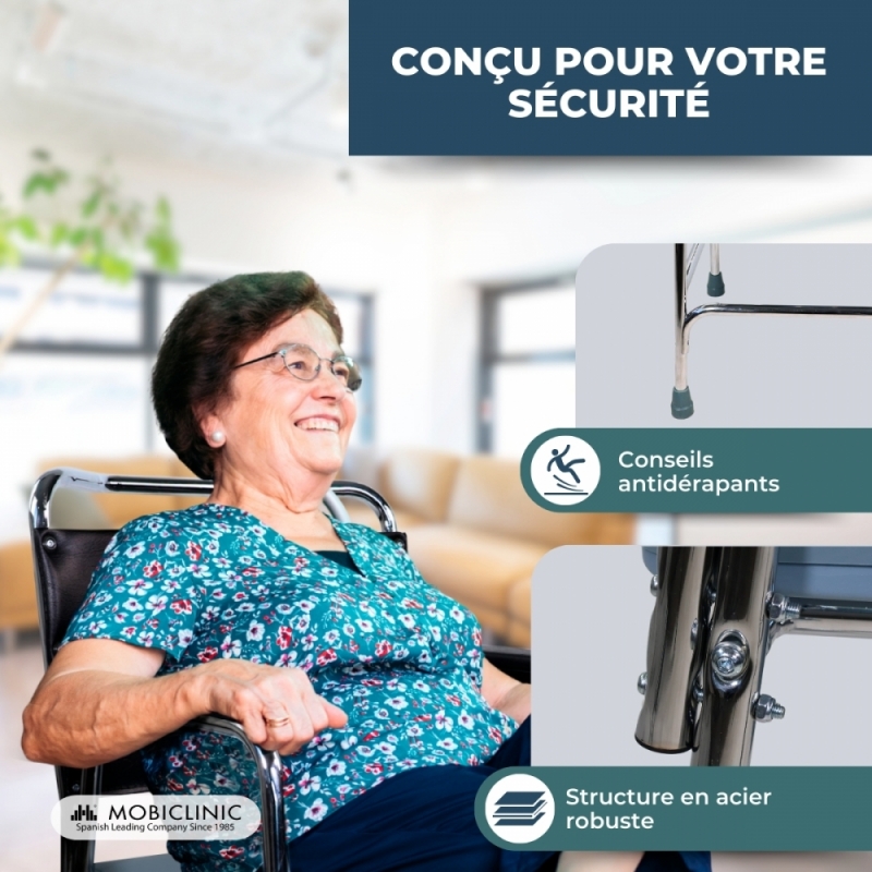 Elle possède également d'un siège rembourré amovible pour plus d’hygiène.