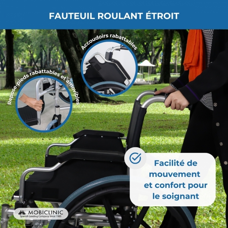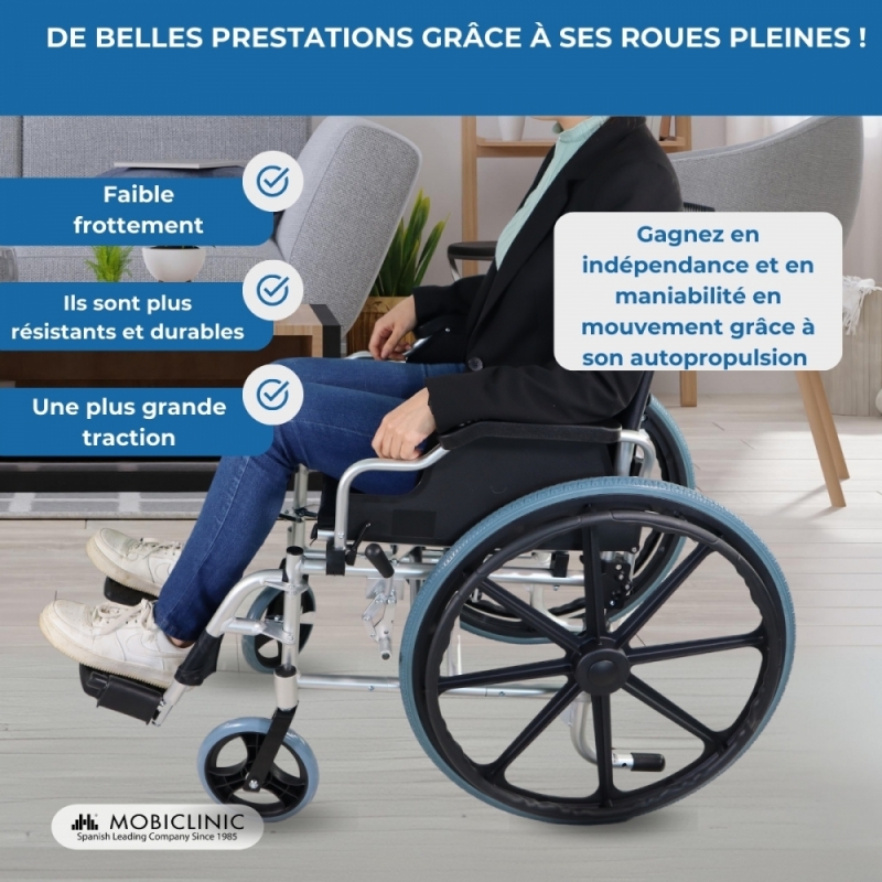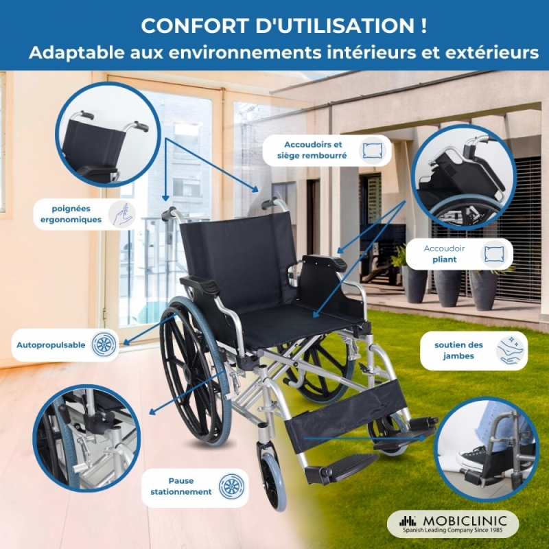 Fauteuil roulant pliant | Aluminium | Accoudoirs pliants et repose-pieds amovibles | Grandes roues | Ópera | TOP | Mobiclinic