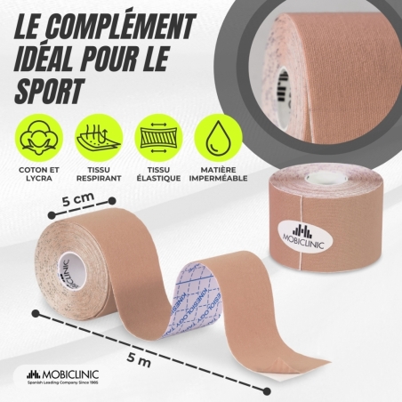 Le bandage kinésiologique est idéale pour traiter les inflammations, les douleurs musculaires et améliorer la circulation. Tout eux grâce à la résistance et transpirabilité apporté par un produit fabriqué avec un 97% en coton et un 3% en élasthanne.