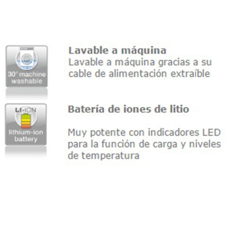 Il intègre une batterie au lithium rechargeable qui vous permettra de bénéficier de 4 heures de chaleur mobile, quelle que soit l'unité principale. En outre, vous pouvez également visualiser les fonctions de charge et de température à sélectionner grâce au bloc-batterie lithium-ion haute capacité avec affichage à LED.