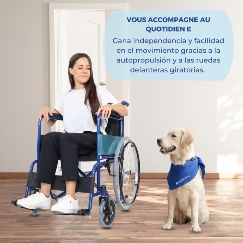 Fauteuil roulant | Pliable | Grandes roues | Léger | Orthopédique | Bleu | Alcázar | Mobiclinic