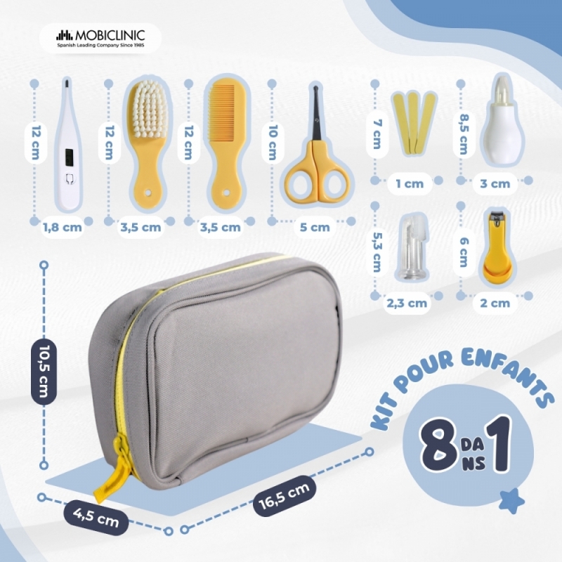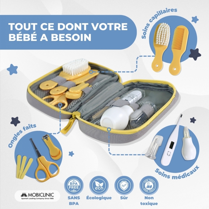 Le trousse de toilette pour bébé Mobiclinic Baby Care Kit est l'ensemble le plus complet et le plus utile pour les soins et l'hygiène des petits. Il est idéal pour les nouveaux parents comme pour les parents expérimentés. Il peut également être une très bonne idée de cadeau.