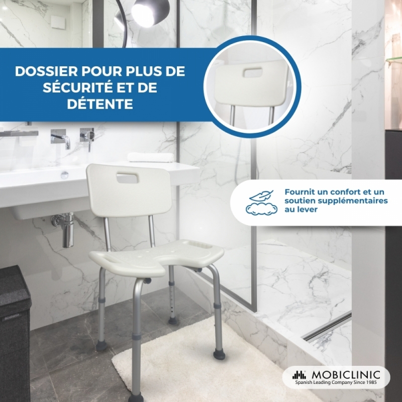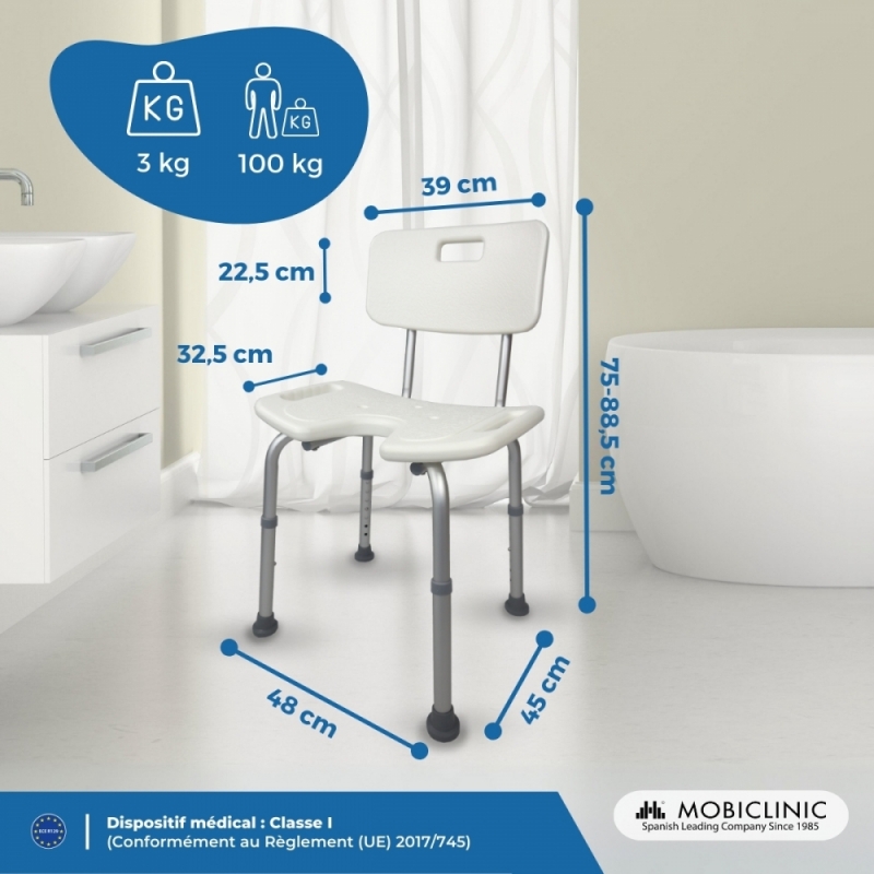 Chaise de douche avec découpe en U | Réglable en hauteur | Marisma | Mobiclinic
