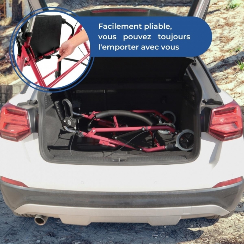 - Dossier rembourré qui permet un repos optimal sur votre déambulateur à 4 roues, indispensable pour reprendre des forces.