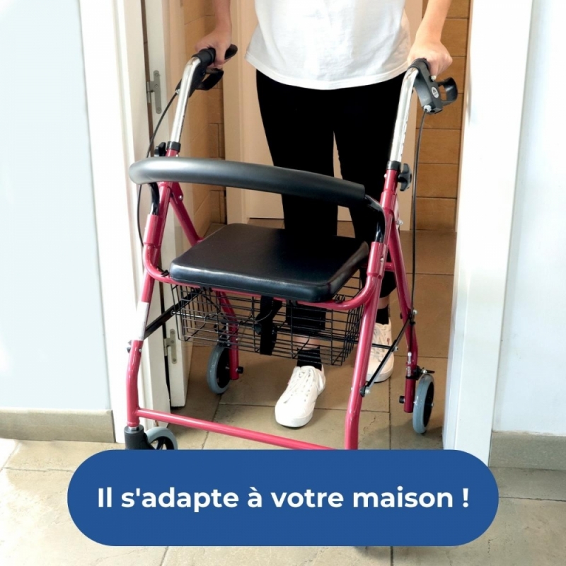PLIABLE : Cette aide technique est pliable, vous pourrez ainsi mettre le déambulateur adulte dans le coffre de votre voiture sans problème, voire le ranger sans prendre trop de place.
