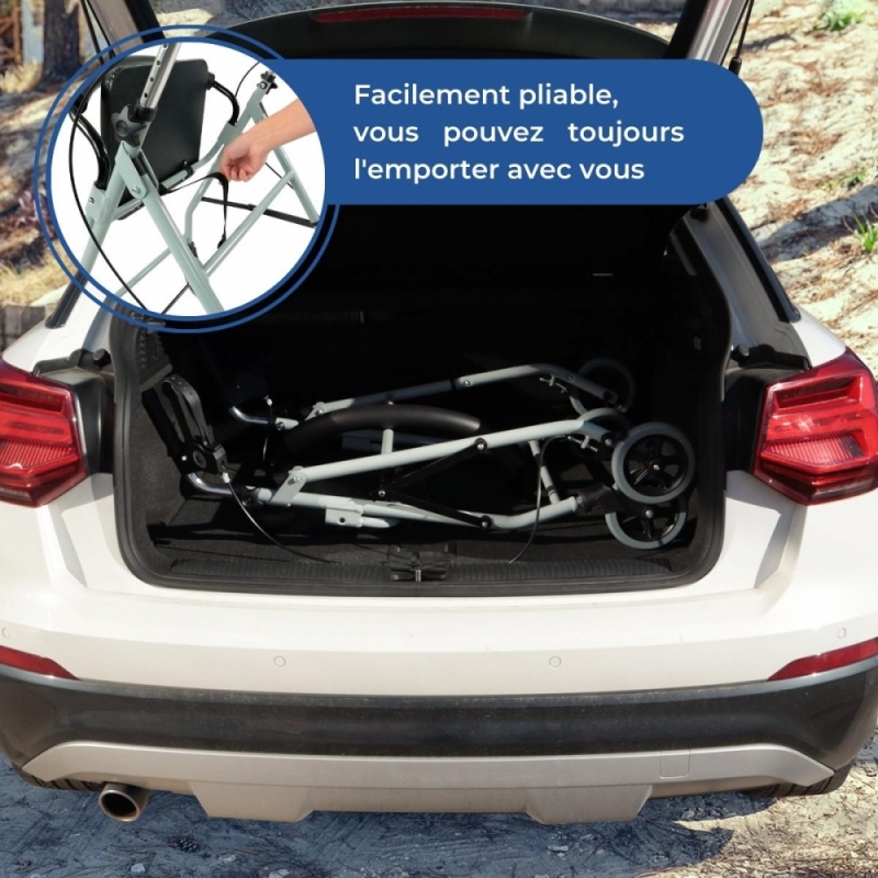 - Dossier rembourré qui permet un repos optimal sur votre déambulateur, indispensable pour reprendre des forces.