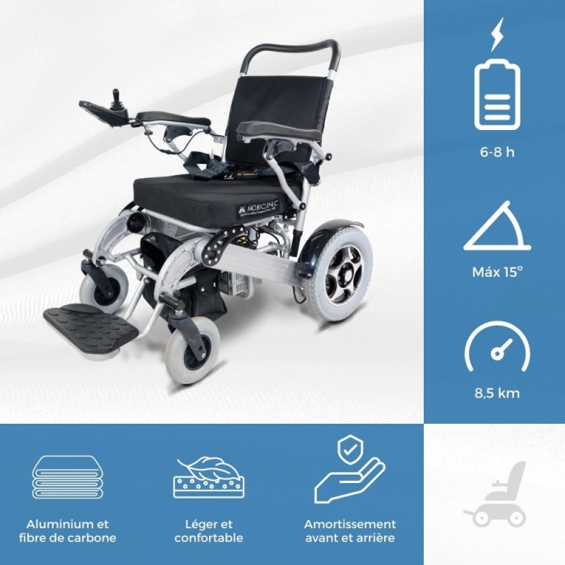 Le fauteuil roulant électrique Troya by Mobiclinic a été conçu pour garantir le confort et la mobilité de l'utilisateur sur tous types de terrains. Grâce à son poids de seulement 24,8 kg et à son système pratique de pliage vers l'avant, vous pouvez transporter cette chaise dans n'importe quel coffre et l'utiliser partout où vous en avez besoin. De plus, lorsque vous ne l'utilisez pas, vous pouvez ranger cette chaise pliante dans n'importe quel coin de votre maison sans aucun problème.