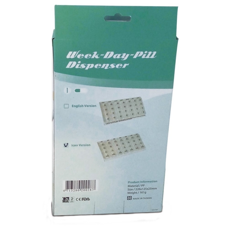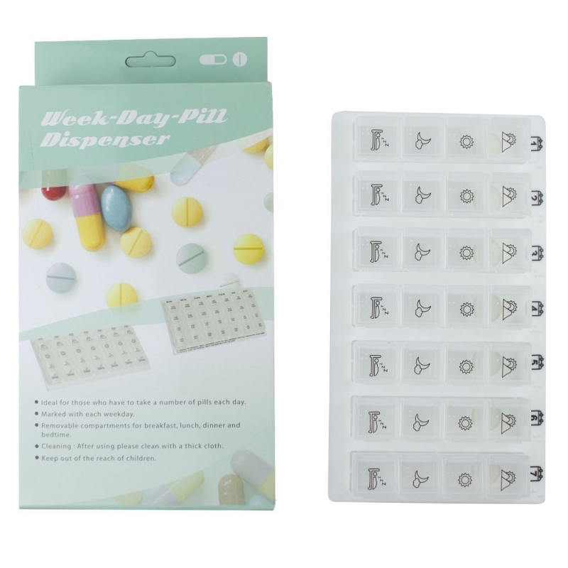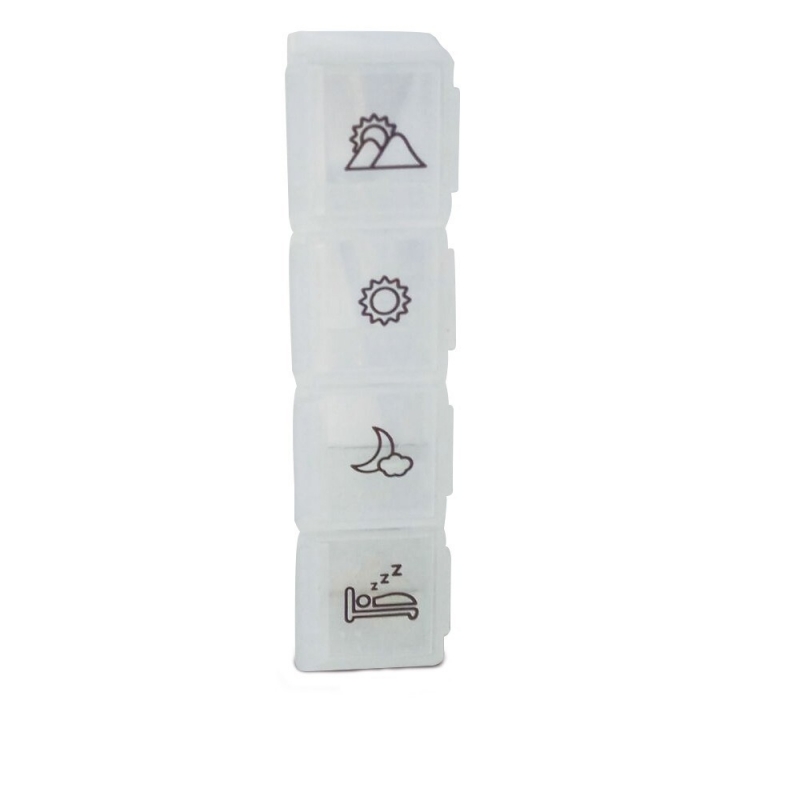 Ce pilulier de 4 prises par semaine contient sept contenants, un pour chaque jour de la semaine. Idéal pour les personnes qui doivent prendre plusieurs pilules par jour et pour suivre l'évolution de leur état de santé, vous n'oublierez plus jamais une piqûre grâce à ce pilulier hebdomadaire.