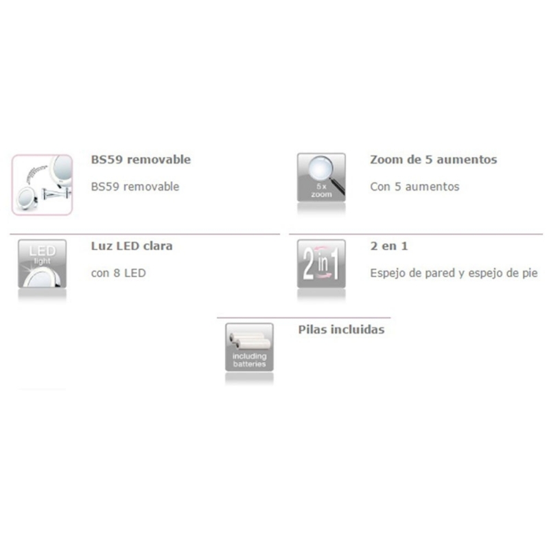 Vous pouvez le placer sur le mur de votre chambre ou de votre salle de bain et l'enlever pour l'utiliser comme miroir de maquillage et le transporter facilement n'importe où. Il a une lumière led claire et un design élégant en chrome de haute qualité; la surface du miroir est de 11 cm.